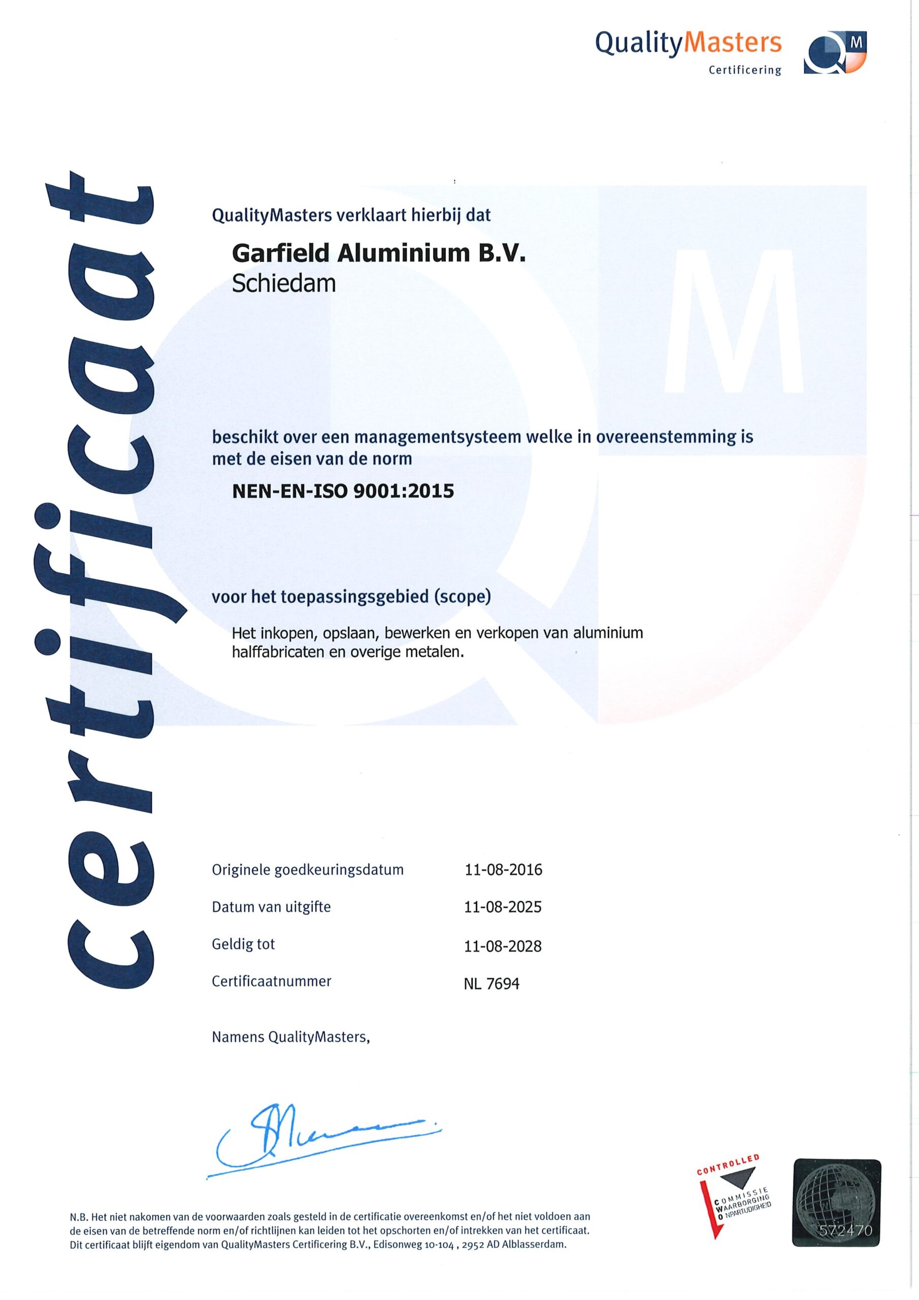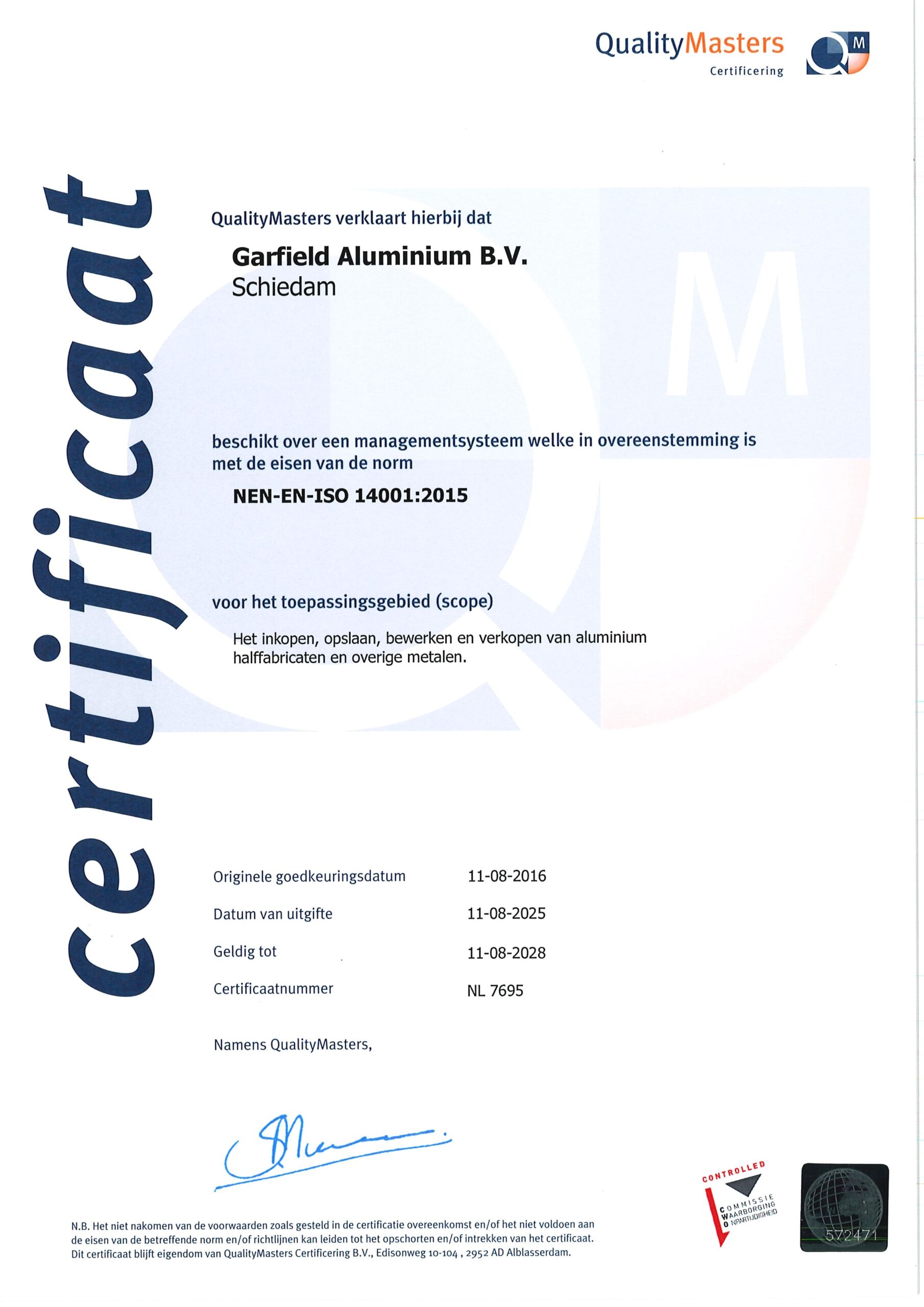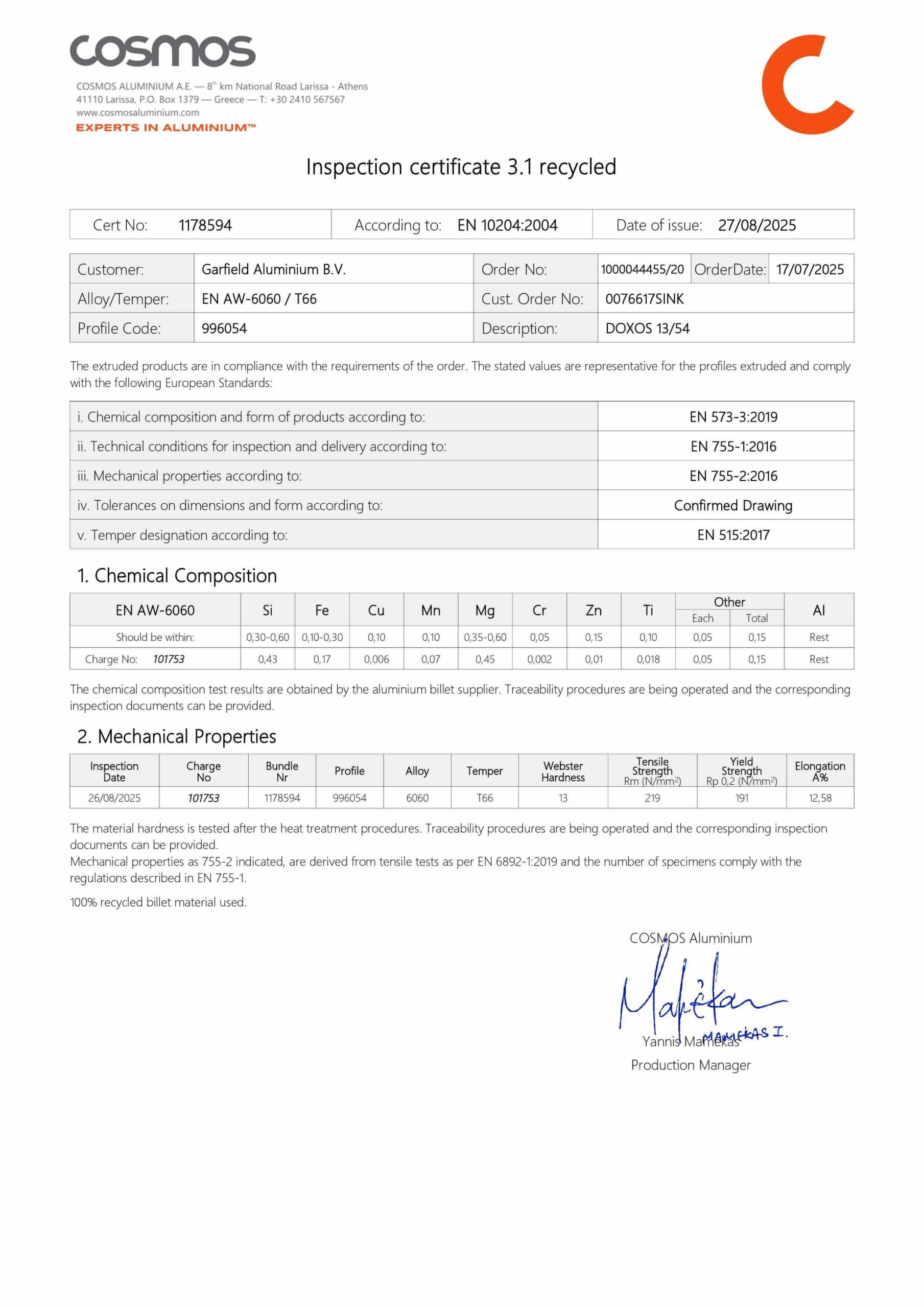 EN 10204 3.1 Materialencertificaat